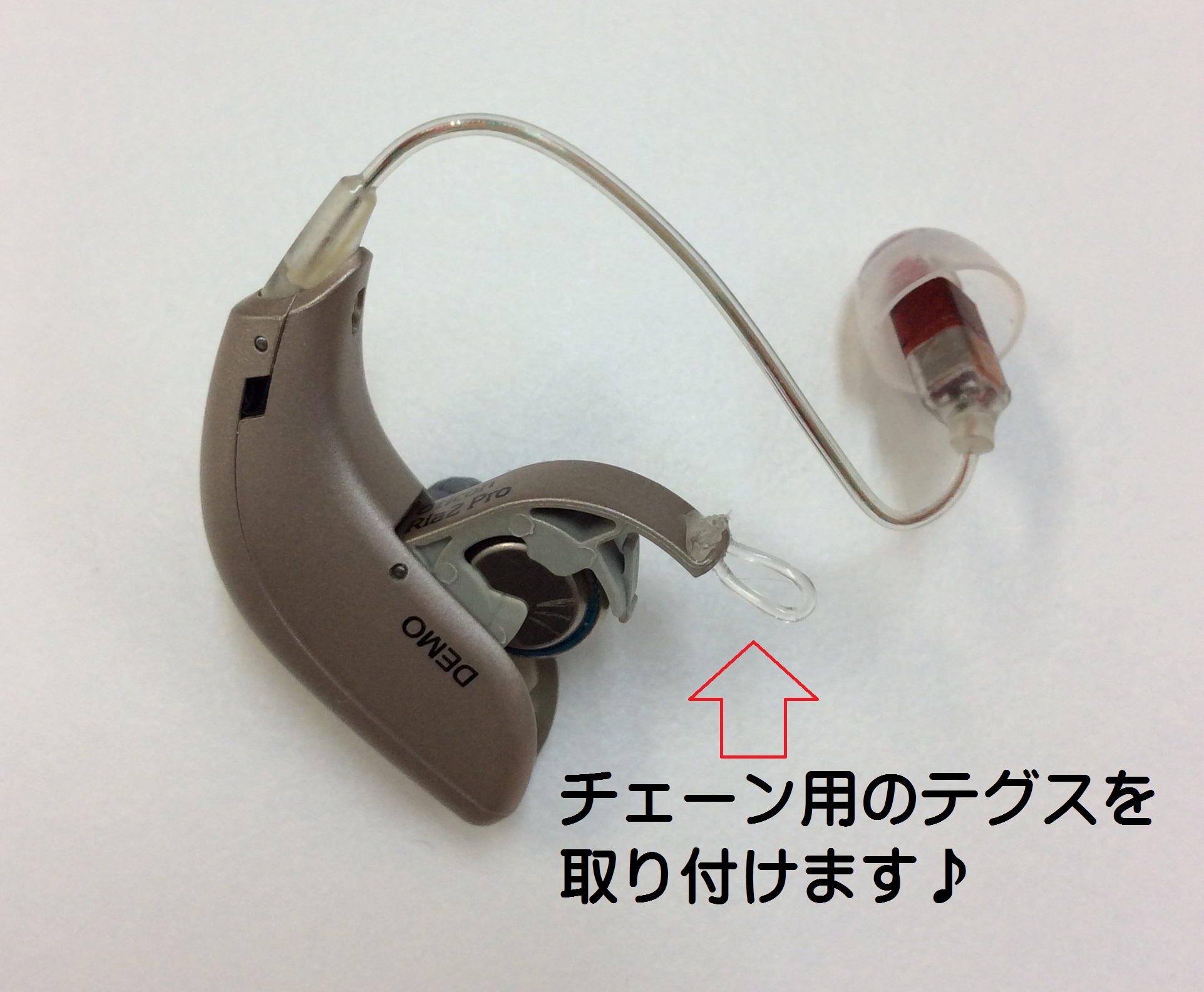 今お使いの補聴器に当店で少し手を加えるだけで簡単にチェーンが取り付けできます♪